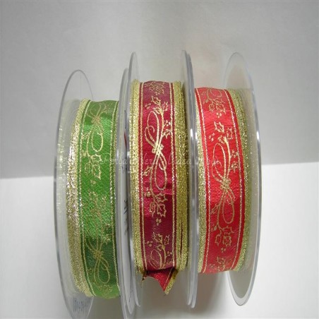 Nastrino con anima di fil di ferro, h 25 mm, disponibile in 3 colori: rosso, bordeaux e verde.