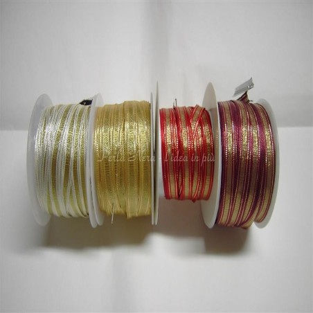 Nastro con anima di fil di ferro, h. 8mm, disponibile in 3 colori:bordeaux, oro e panna.